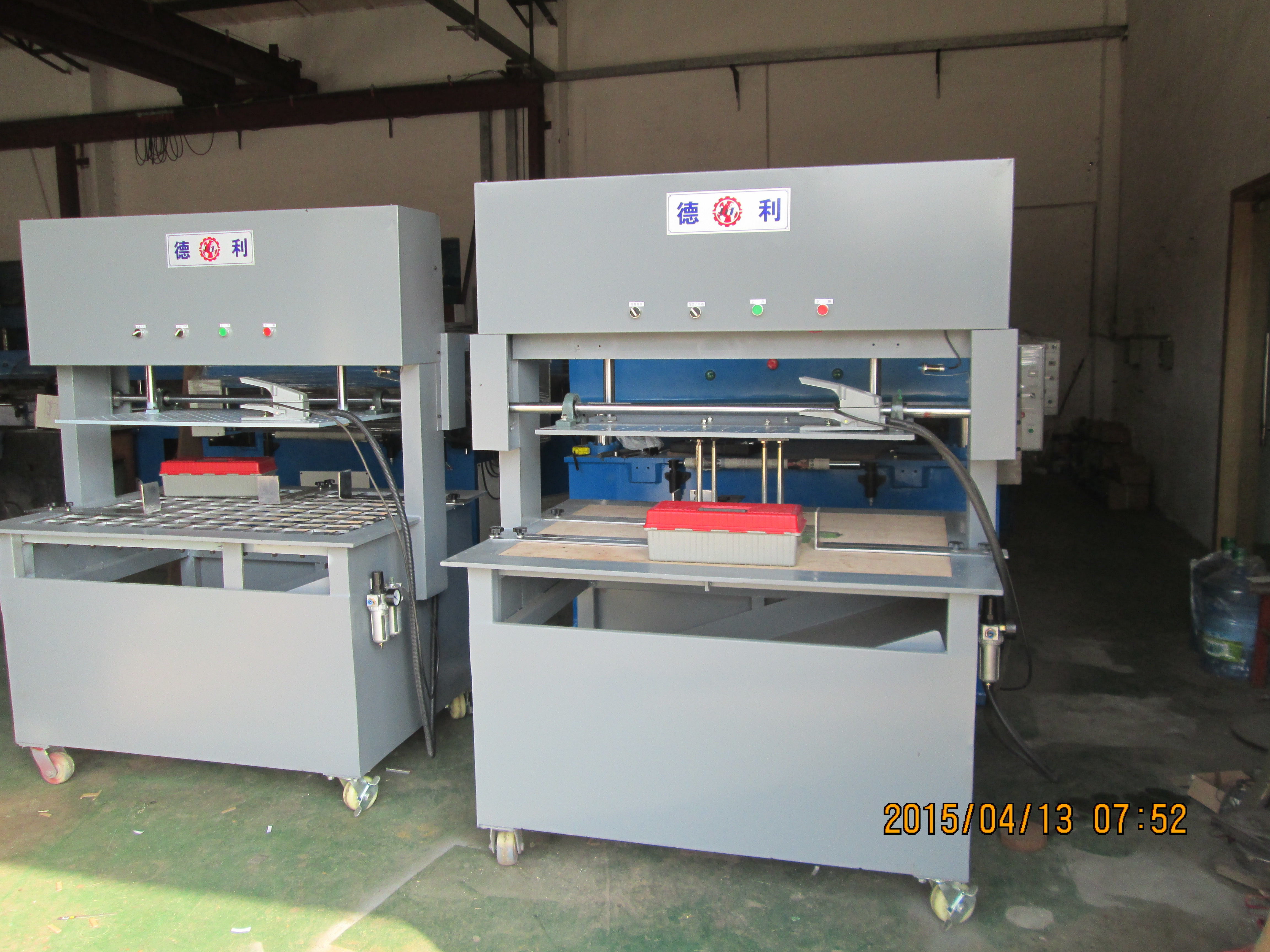 4. 模具安装定位后,将挡纸板定好位,并锁紧。将自动∕手动档位打到自动档,蜂窝板及模具整体上升。按脚踏开关,此时,按一次,蜂窝板及模具整体往下工作一次,每工作一次,就更换一叠材料。